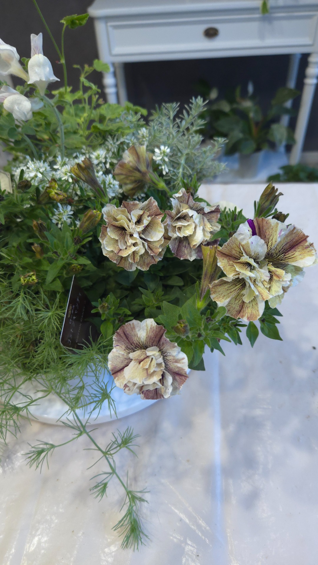 アンティークカラーのペチュニアジュリエットとユーフォルビアダイアモンドスノーを中心にした、季節の花苗セットになります。単体で植えても素敵になりますが、一緒に植えることでぐっと魅力的な寄せ植えになります。